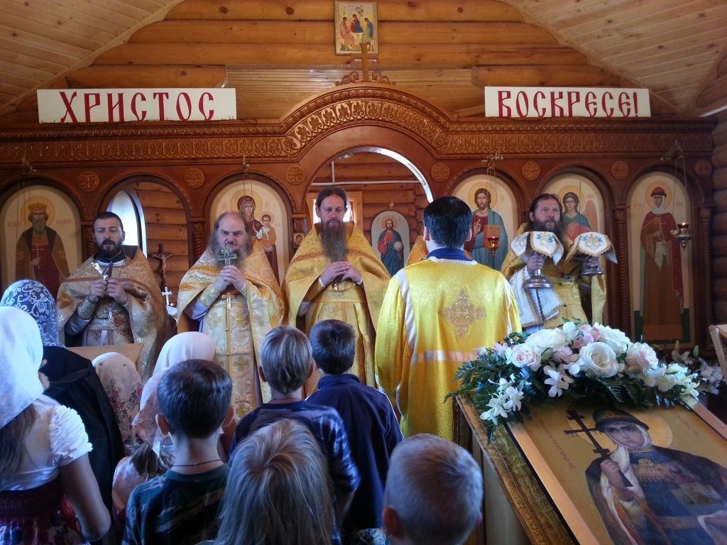 Кроме отца Антония и отца Артемия почтить святую Ольгу и послужить в этот день приехали игумен Сергий (Гайдук) из Иоанно-Богословского мужского монастыря, настоятель Казанского храма села Константиново протоиерей Александр Куропаткин и игумен Лука (Степанов), настоятель Спасо-Преображенского Пронского мужского монастыря. Столько священников в своем небольшом храме дети видели впервые. В церкви – идеальная тишина. Даже не верится, что все четыре взвода здесь, на месте, готовятся к принятию Святого Причастия, чинно и с достоинством подходят к чаше и сосредоточенно потом внимают проповеди отца Артемия.