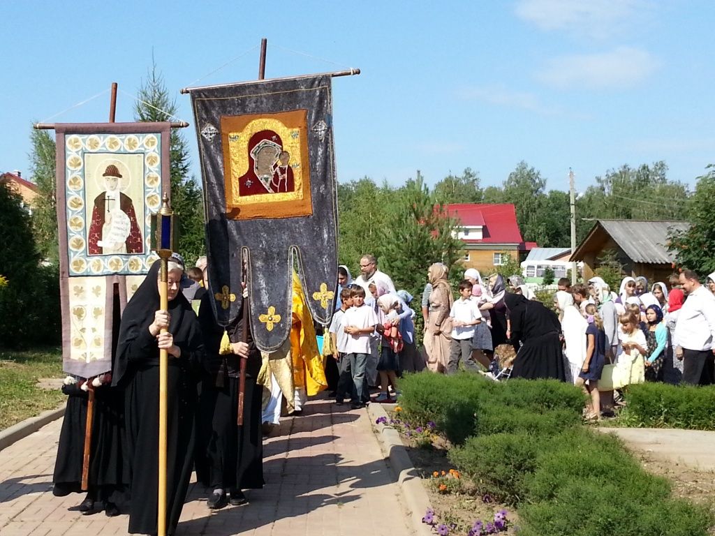 Сестры приехали накануне дня памяти святой равноапостольной княгини Ольги, чтобы подготовить храм к престольному празднику. Богослужения здесь совершаются нечасто, преимущественно летом. Служить приезжают священники из расположенного рядом Иоанно-Богословского мужского монастыря и храма Казанской иконы Божией Матери в селе Константиново. В деревянном уютном здании через несколько часов впервые совершат службу по монастырскому уставу, а в будущем храм и территория вокруг станут полноценным подворьем Алексеевского монастыря.