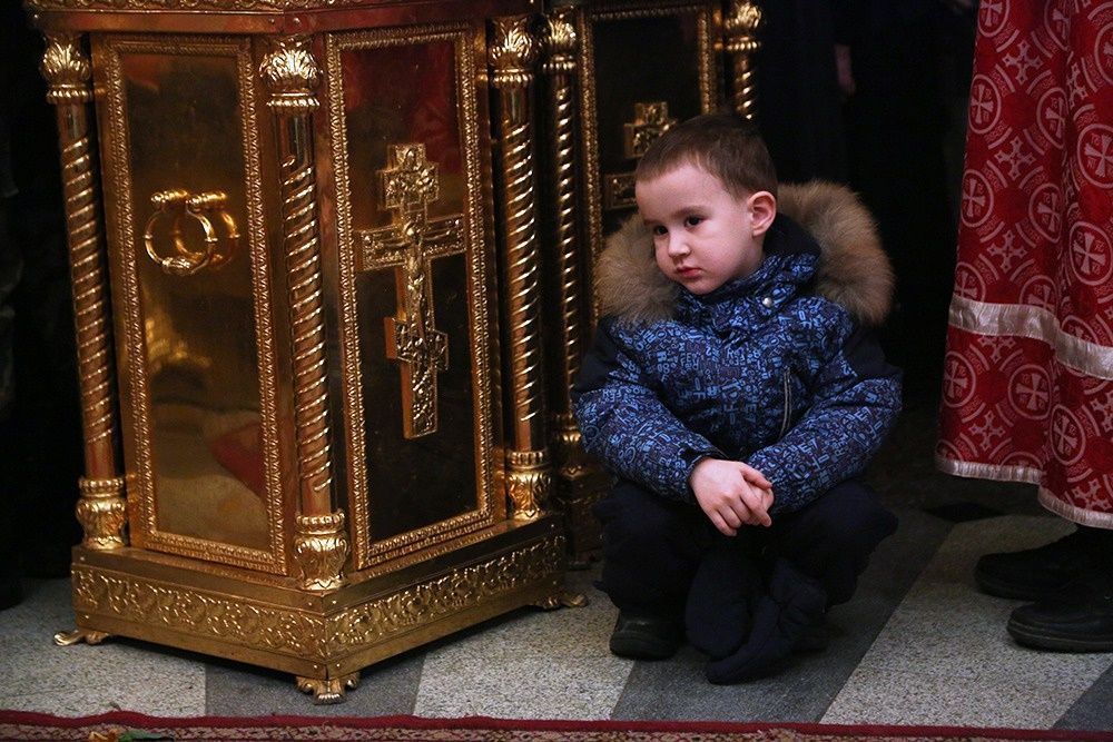 Другое дело, что у детей разного возраста разные возможности понимания богослужения, участия в нем. Грудного младенца приносят на руках, потому он ведет себя спокойно. Дети в два-три года богослужение еще не понимают, но ведут себя очень активно и долго не могут выдержать пребывание на одном месте, не могут себя контролировать. Но зато они хорошо воспринимают обрядовую часть: поставить свечи, взять просфору, поцеловать икону. Более старшие дошкольники тоже очень подвижны, им тоже тяжело долго быть на службе, но они уже могут воспринять смысл праздников или каких-то действий.
