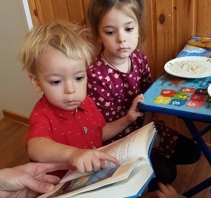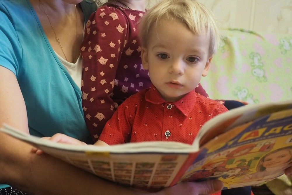 Мальчик показывает пальцем на картинки. Яше два года, и он уже знает историю Иосифа из Ветхого Завета…
